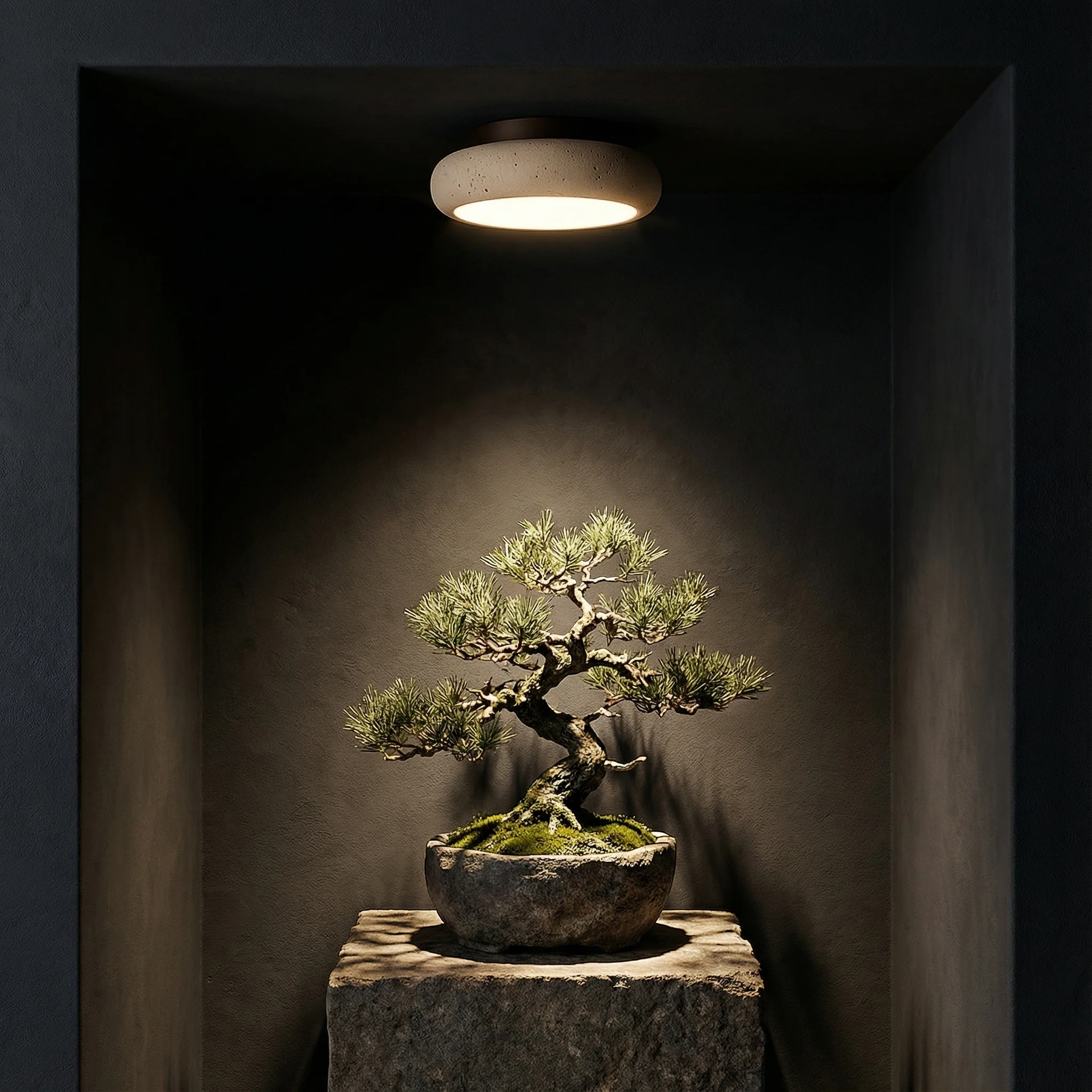 Alba presents a softly rounded ceiling profile that feels calm, grounded, and architectural. Its low silhouette and stone-like surface create a quiet presence overhead, balancing modern form with natural texture for a refined interior statement.