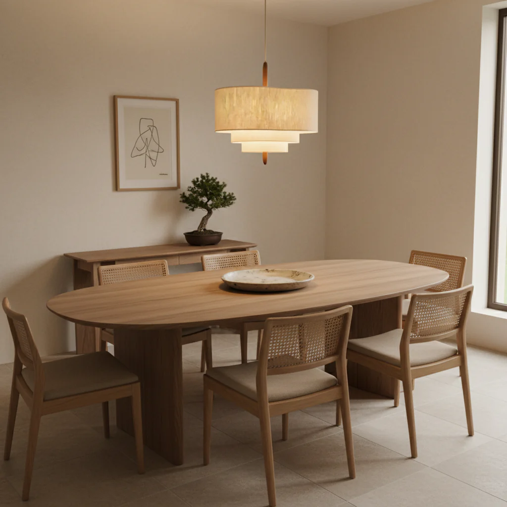 Jett brings a sculptural calm to the ceiling with its tiered, drum-shaped silhouette. The layered fabric shade softens its geometry, creating an understated focal point that complements contemporary or mid-century interiors.