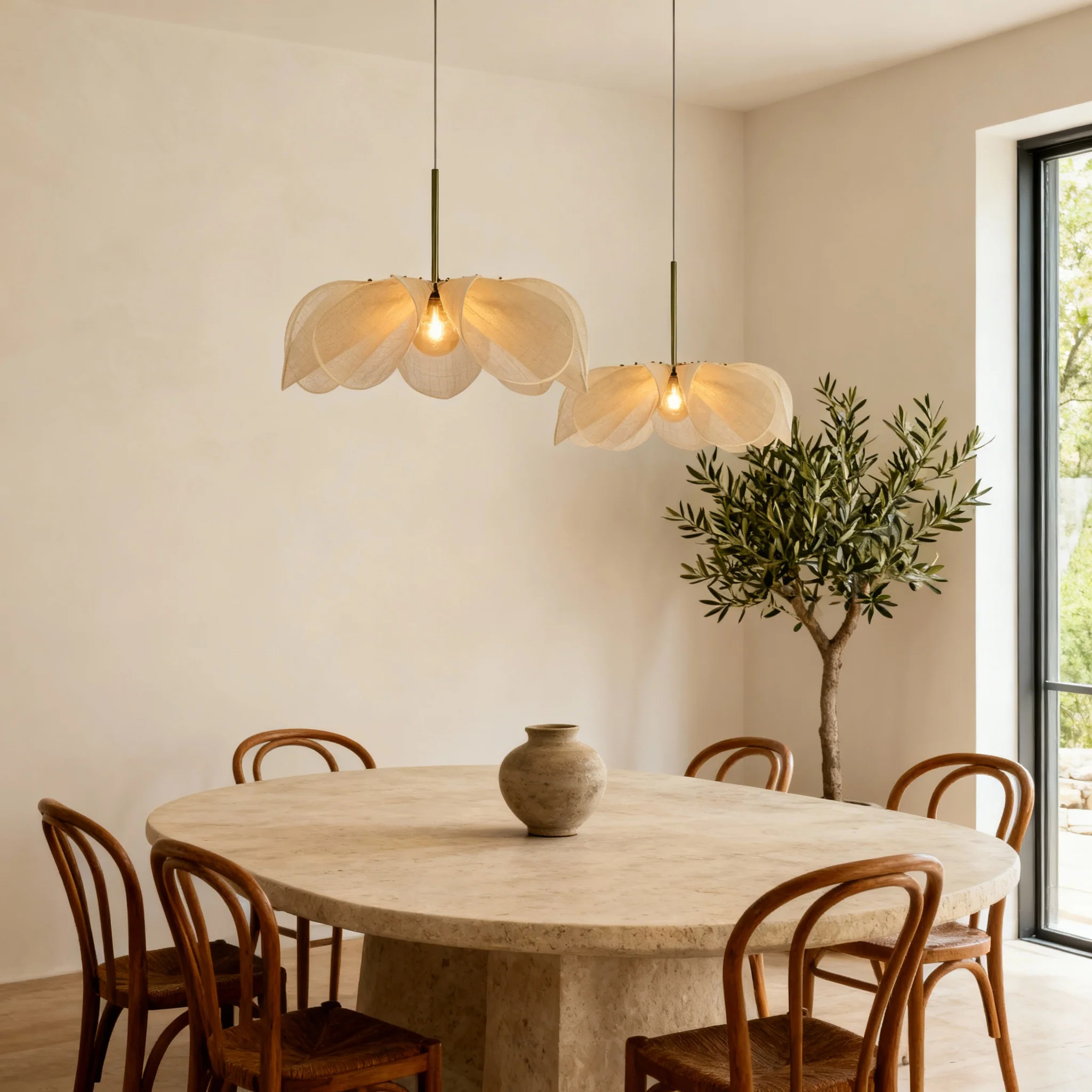 Solen captures the calm beauty of nature with its soft, layered silhouette crafted from natural hemp. Its petal-like form radiates quiet elegance, diffusing light with a tranquil, organic warmth that complements Japandi and wabi-sabi interiors.